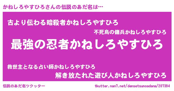 肩書あだ名 | 『かねしろやすひろ閣下』 |
