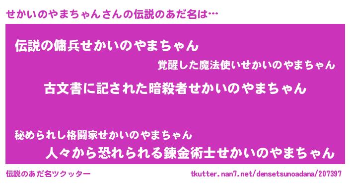 | ヘコむあだ名 | 『せかいのやまちゃん(苦笑)』『せかにゅー』 |
