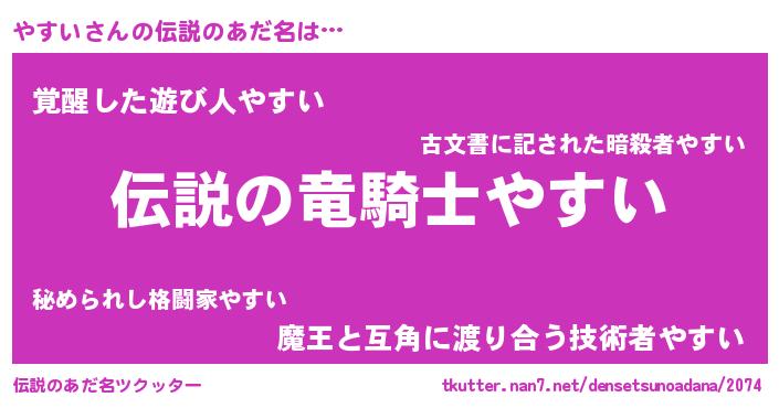 | ファンタジー風あだ名 | 『ヤスフェル』『ファントムヤスス』 |
