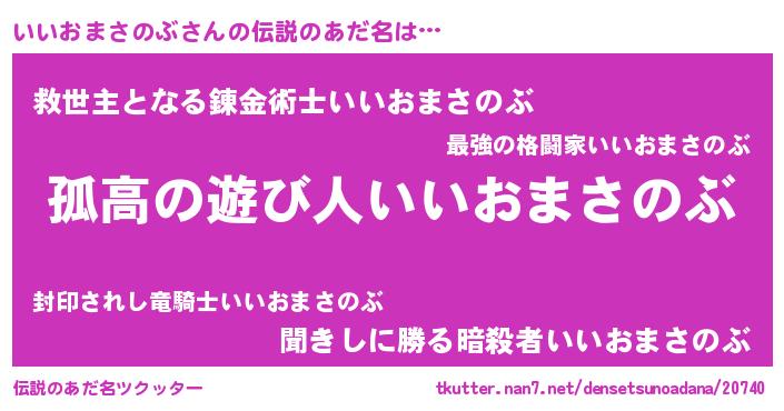 | 意味不明あだ名 | 『とにかく怪しいいいおまさのぶ』 |