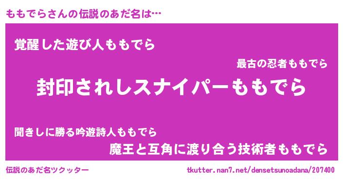 | 意味不明あだ名 | 『住所不定無職ももでら(89歳)』 |