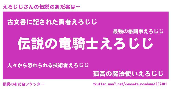 | 意味不明あだ名 | 『住所不定無職えろじじ(12歳)』 |