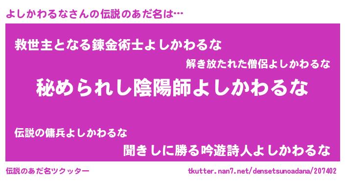 | ファンタジー風あだ名 | 『エターナルヨシカワルナー』 |