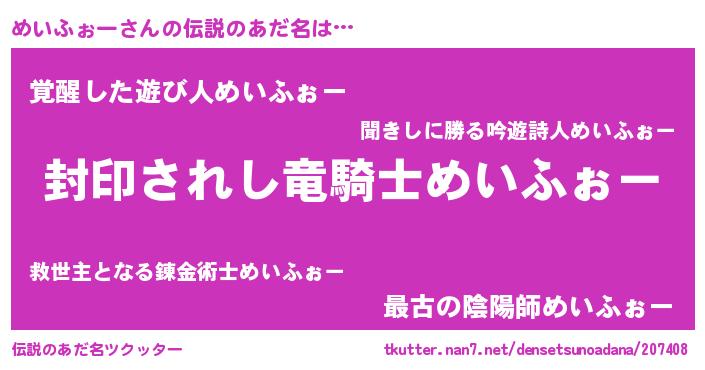| ファンタジー風あだ名 | 『メイフェル』『カークメイラー』 |