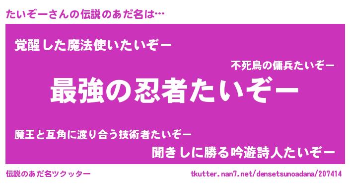 | ファンタジー風あだ名 | 『エターナルタイゾーー』 |