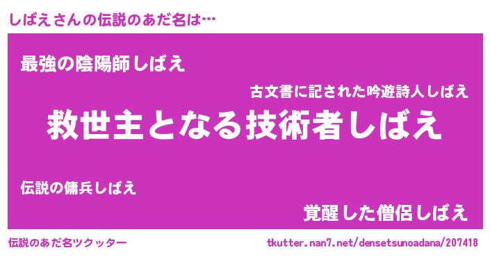 | ヒーロー風カッコイイあだ名 | 『天空の使者しばえ』『幻影騎士シバ』 |