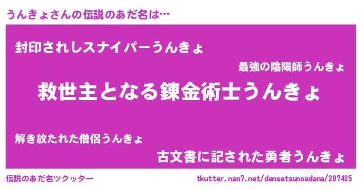| ヒーロー風カッコイイあだ名 | 『天空の使者うんきょ』『ネオウンキョ』 |