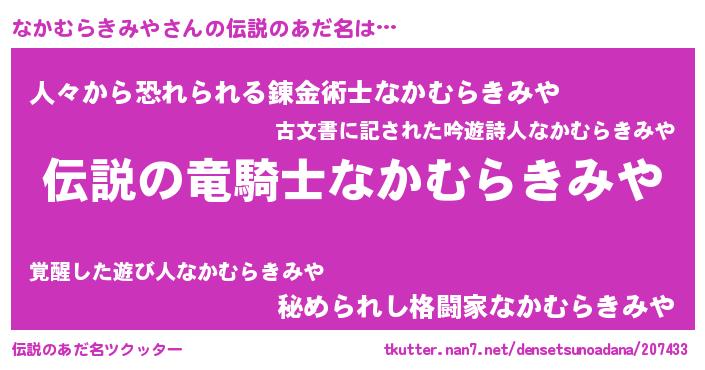 | 胡散臭い通販商品みたいなあだ名 | 『必ず成功するブレスレット…その名も「なかむらきみや」』 |