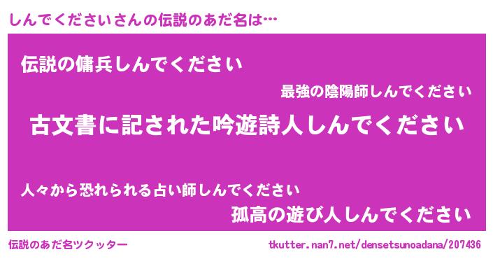 | ヘコむあだ名 | 『しんでください(笑)』『しんもー』 |
