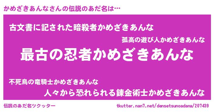 | 料理風あだ名 | 『かめざきあんなごはん』 |