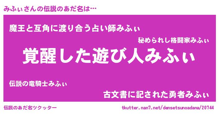 | 意味不明あだ名 | 『とにかく怪しいみふぃ』『自称みふぃ』 |