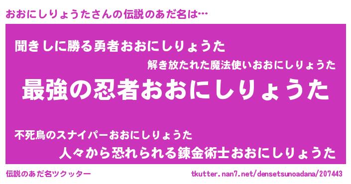 | 意味不明あだ名 | 『自称おおにしりょうた』 |