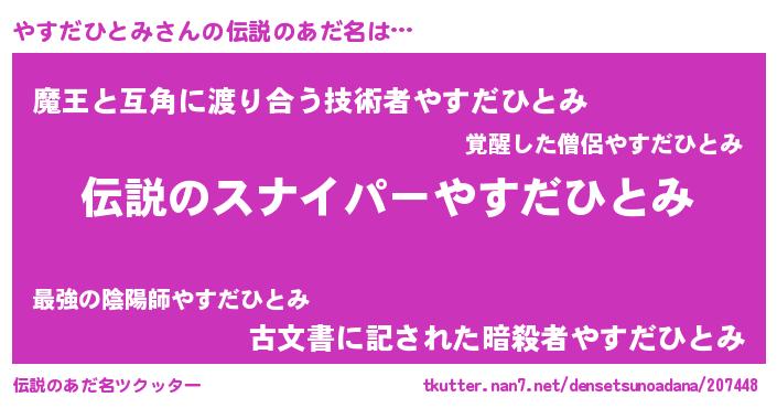 | 意味不明あだ名 | 『住所不定無職やすだひとみ(74歳)』 |