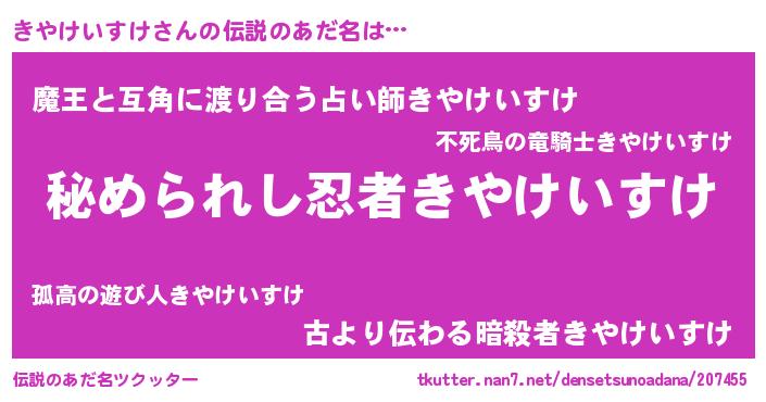 | 意味不明あだ名 | 『自称きやけいすけ』 |