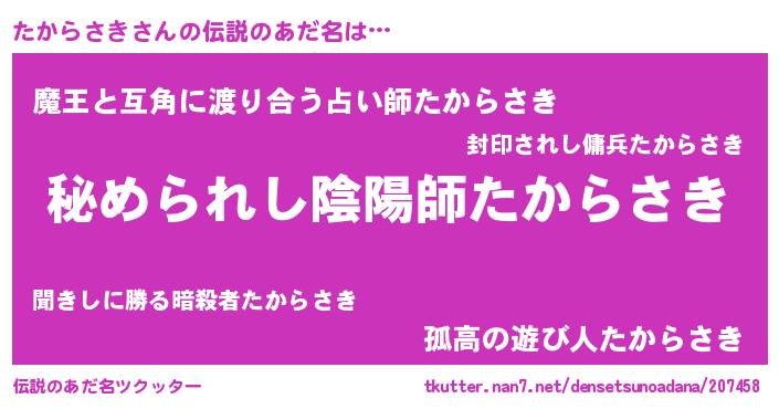 | 意味不明あだ名 | 『たからさきフォーエバー』 |