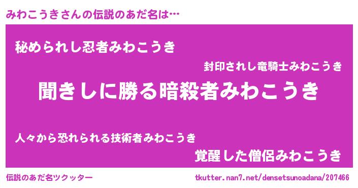 | 意味不明あだ名 | 『永久保存みわこうき』 |