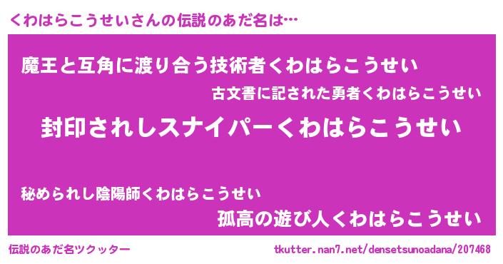 | ヒーロー風カッコイイあだ名 | 『スーパークワハラコウセイ』 |