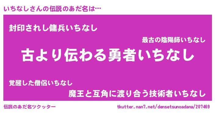 | 女子向けラノベタイトル風あだ名 | 『いちなしの契約王妃』『いちなし恋絵巻』 |