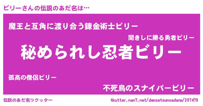 | ヒーロー風カッコイイあだ名 | 『ウルトラ戦士ビリー』『仮面ビリダー』 |