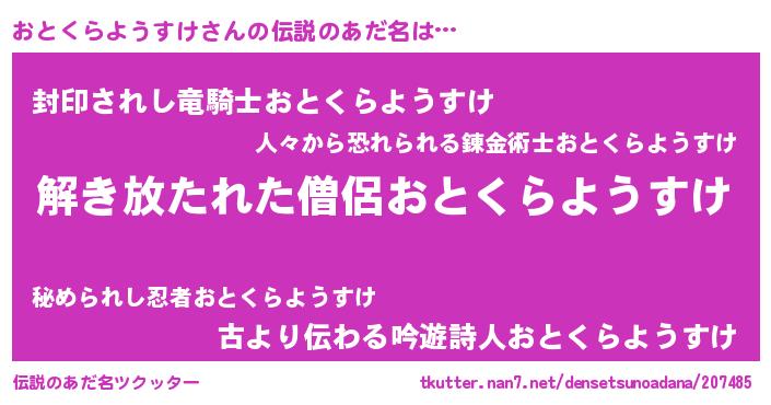 | 意味不明あだ名 | 『とにかく怪しいおとくらようすけ』 |