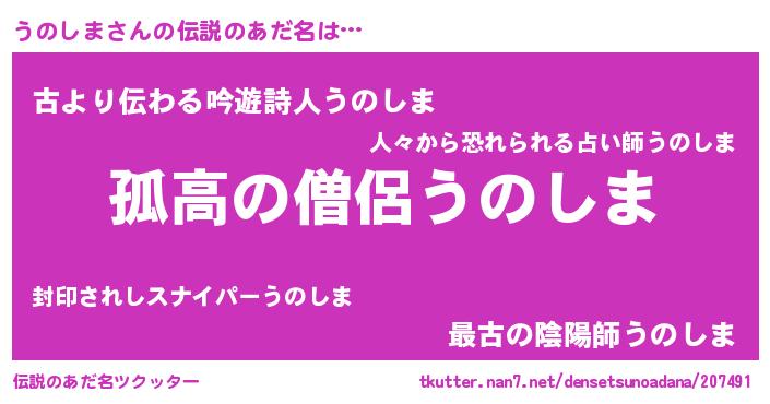 | 女子向けラノベタイトル風あだ名 | 『うのしまなんてお断りですっ。』 |