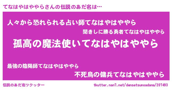 | 胡散臭い通販商品みたいなあだ名 | 『信頼と実績のサプリメント…その名も「てなはやはややら」』 |