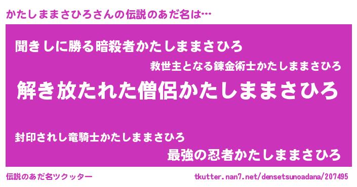 | ヒーロー風カッコイイあだ名 | 『サイバー戦士カタシママサヒロ』 |