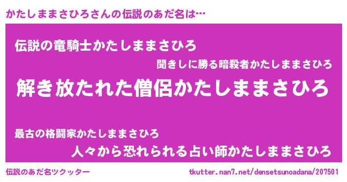 | 意味不明あだ名 | 『とにかく怪しいかたしままさひろ』 |