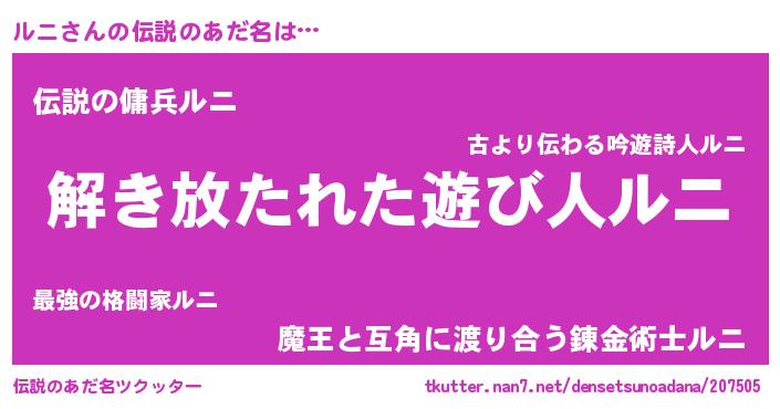 | ヒーロー風カッコイイあだ名 | 『仮面ルニダー』『暗黒騎士ルニ』 |
