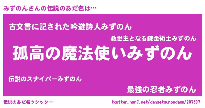 | 男性向けラノベタイトル風あだ名 | 『ダンジョンにみずのんを求めるのは間違っているだろうか』 |