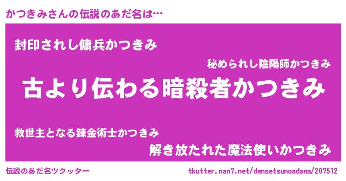 | 胡散臭い通販商品みたいなあだ名 | 『来世でも幸せになれる健康食品…その名も「かつきみ」』 |