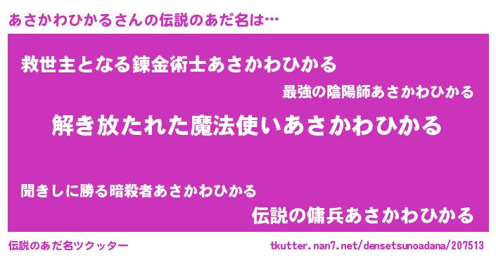| 意味不明あだ名 | 『とにかく怪しいあさかわひかる』 |