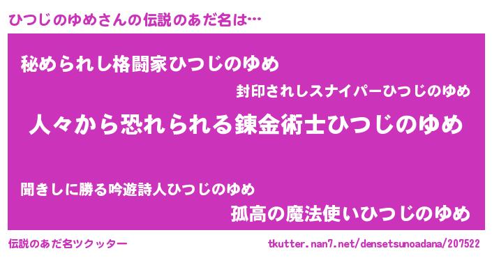 | 女子向けラノベタイトル風あだ名 | 『ひつじのゆめ夫妻のなれそめ』 |