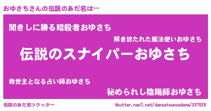| 胡散臭い通販商品みたいなあだ名 | 『必ず成功する霊験あらたかなお札…その名も「おゆさち」』 |