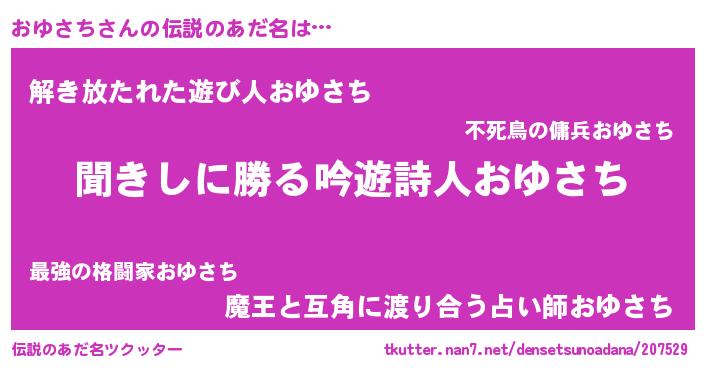 | ヘコむあだ名 | 『おゆさち(笑)』『おゆっちょ』 |