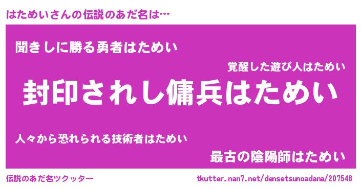 | ヒーロー風カッコイイあだ名 | 『究極戦士ハタメイ』『スーパーハタメイ』 |