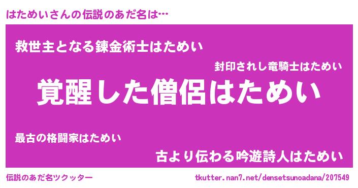 | 男性向けラノベタイトル風あだ名 | 『はためいに滅ぼされるだけの簡単なお仕事です』 |
