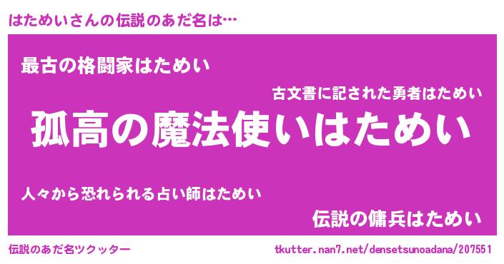 | 胡散臭い通販商品みたいなあだ名 | 『信頼と実績のサプリメント…その名も「はためい」』 |