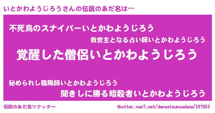 | 意味不明あだ名 | 『住所不定無職いとかわようじろう(59歳)』 |