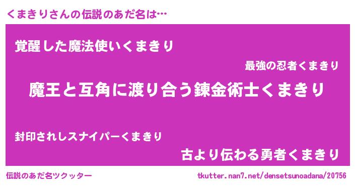 | 女子向けラノベタイトル風あだ名 | 『くまきり恋絵巻』 |