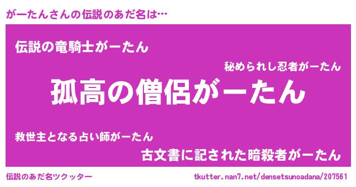 | 意味不明あだ名 | 『とにかく怪しいがーたん』 |