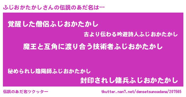 | 女子向けラノベタイトル風あだ名 | 『ふじおかたかし恋絵巻』 |