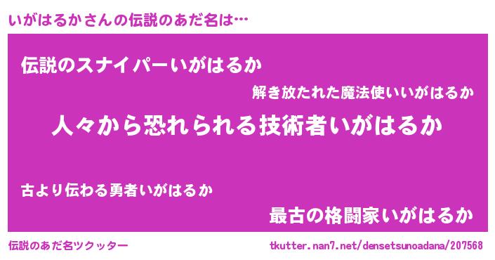 | 女子向けラノベタイトル風あだ名 | 『いがはるかなんてお断りですっ。』 |