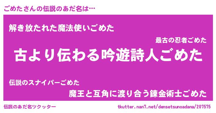 | 意味不明あだ名 | 『住所不定無職ごめた(7歳)』 |