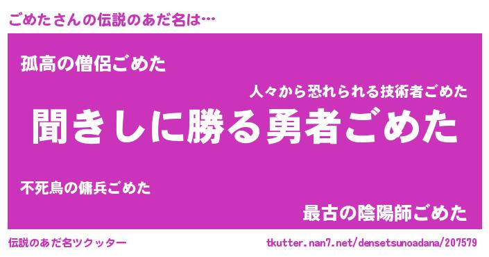 | 男性向けラノベタイトル風あだ名 | 『ごめたという概念が存在しない退屈な世界 』 |