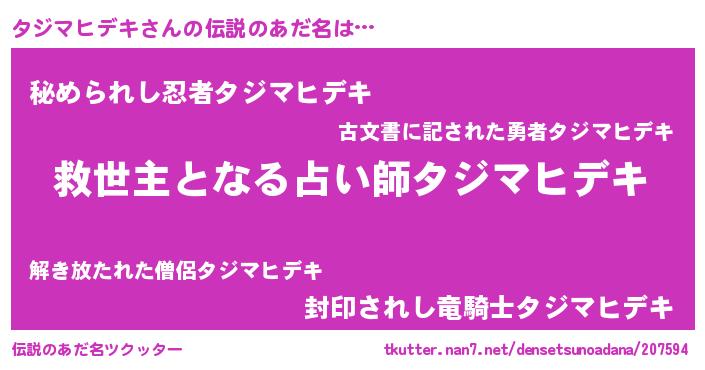 | 意味不明あだ名 | 『住所不定無職タジマヒデキ(53歳)』 |