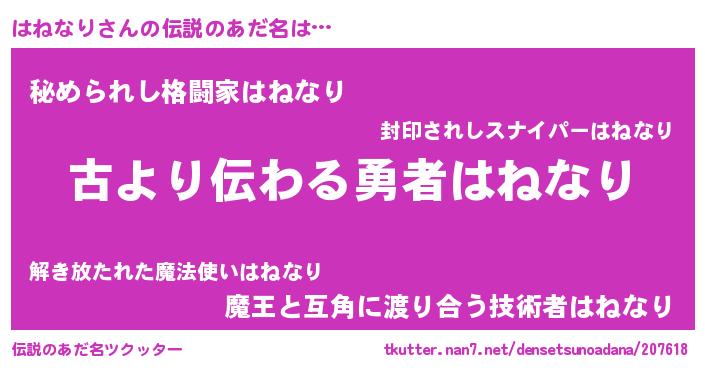 | ヒーロー風カッコイイあだ名 | 『ネオハネナリ』『ウルトラはねなりマン』 |