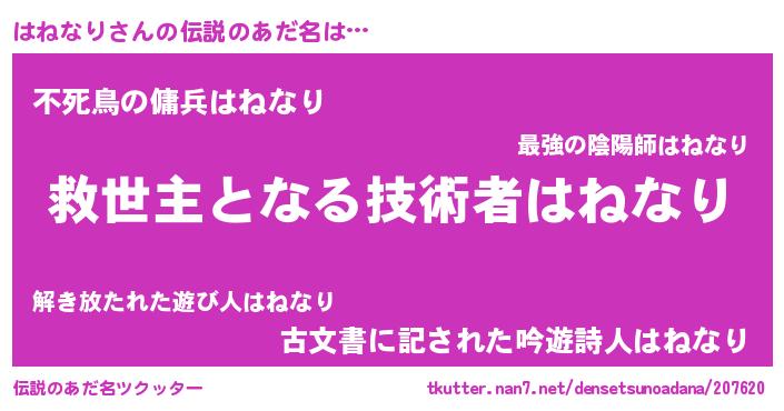 | ヒーロー風カッコイイあだ名 | 『慈愛の使者はねなり』『仮面ハネダー』 |