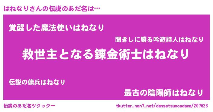| 胡散臭い通販商品みたいなあだ名 | 『モンドセレクションを受賞した隕石のかけら…その名も「はねなり」』 |