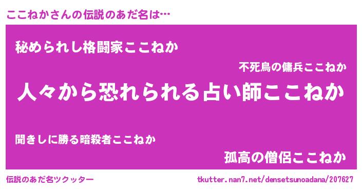 | ヒーロー風カッコイイあだ名 | 『友情の使者ここねか』『仮面ココダー』 |